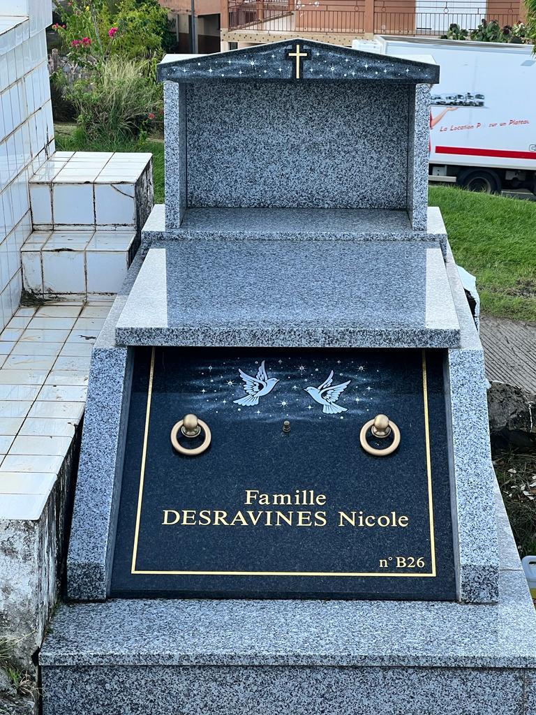 La partie marbrerie est assurée par notre prestataire Funabor Caraïbes, entreprise spécialisée dans les monuments et articles funéraires, reconnue pour son sérieux et la qualité de son travail.